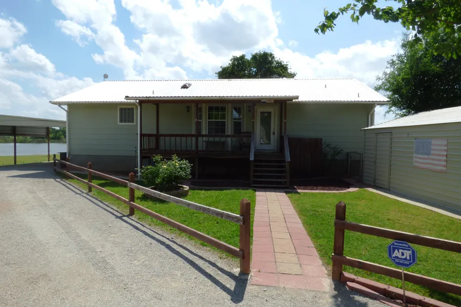 WATERFRONT home built in 2010. ADORABLE 2 bdrm, 2 bath home sits on great open water with a spectacular view. Comfortable open concept living room, dining, and kitchen. WB fireplace. Stainless steel appliances convey. Wonderful island great for cooking! Nice sized bedrooms. Two huge walk-in closets. The back porch is the place to be! The pier extends well into the water and is a fisherman's delight with work space for cleaning. Metal roof. Very low maintenance. Would make a great home or weekend vacation home. Concrete ramp makes fishing easy from your backyard! Storage building. Nicely landscaped. Aerobic septic system. Kitchen has pull-out cabinets. House did flood in 2016 but all has been remedied well!