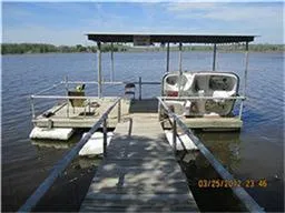 Lake house has 2 bedrooms and 1 bath. Nice sized living room, cute kitchen with lots of cabinets and eat-in dining. Bluff lot. Well house and a nice covered, floating dock. Great patio perfect for entertaining overlooking the bluff. Conveys with a furniture, entertainment center, appliances and even a paddle-boat!