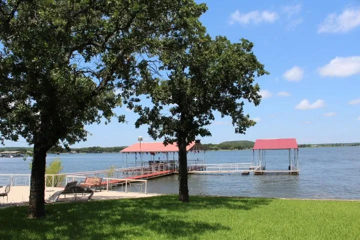 Just a short distance from the DFW Metroplex on Lake Leon, enjoy lake living with lots of room for fun and entertaining! This lovely home has been remodeled, and leaves no detail out! Gorgeous slate tile flooring, quartz counters with black and stainless appliances in the kitchen, large bedrooms and a wonderful master suite with huge, jetted tub and separate shower. Relax inside in the hot tub! The huge kitchen island has ample seating and is a great spot for preparing meals or playing games. Kitchen perks include 2 ovens (one convection), an icemaker & a beverage cooler! The guest house has a bedroom and bathroom along with a covered BBQ area, huge patio by the lake and two docks. Home sits on main body of the lake with great access to the water for boating and fishing.