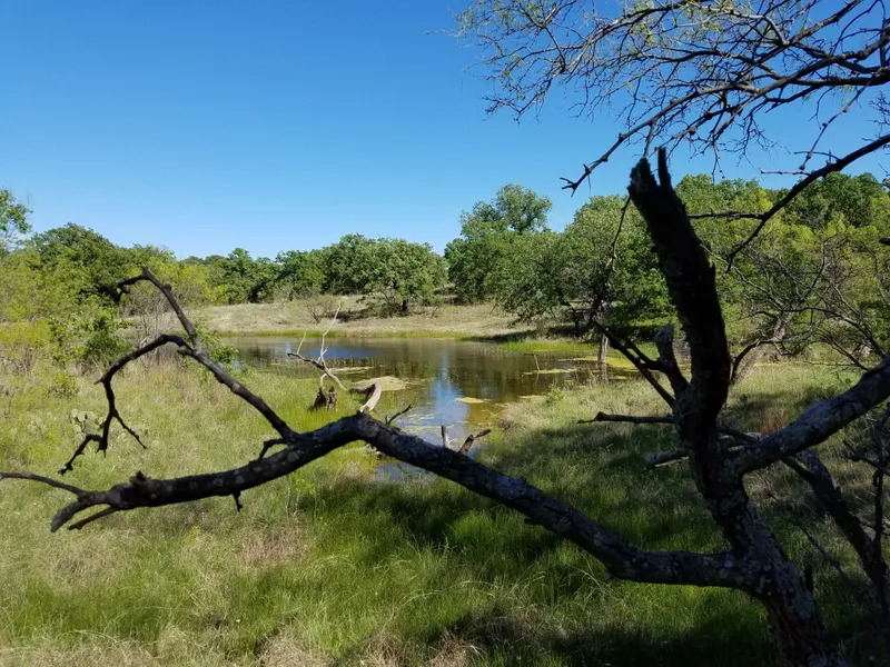 Front part of the property is grass and the back has a stock tank and lots of trees. The tank appears to be spring fed.
