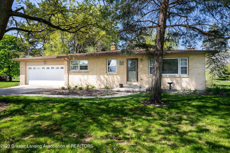 Welcome home to this all brick ranch home with walkout basement, three tier deck, backyard with a fenced in area with 5' fencing, 6+ acres that are partially wooded and are adjacent to 120 acres of land owned by Grand Ledge Schools, a pond, and 35' x 46' foot pole barn with its own well for water, 100 amp electric service & 9'h x 15'w garage doors on both ends. Improvements include: New water heater, gravel drive way to pole barn, newer bedroom windows, and brand new garage interior and doors. The main house features an eat-in kitchen, nice sized living room, a full bathroom, and 2 bedrooms; one of which is an oversized primary bedroom that has three closets. The lower level is a walk-out with sliding glass doors, another full (3/4) bathroom, a beautiful family room with fireplace, an office/den/storage room, and a spacious game room that could easily be converted into a third bedroom. G...
