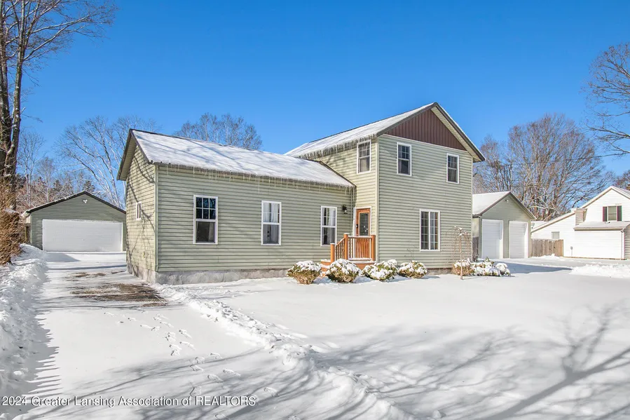 Beautiful 4-bedroom, 3-bath farmhouse style home on .9 acre to enjoy with city water and sewer! Two car garage, 24x32 pole barn with 10 foot double doors, and privacy fenced back yard. Mudroom with laundry, large utility sink and lots of storage. Functional kitchen with newer, quality wood cabinetry, soft close doors and drawers, lots of storage, tile back splash, adjustable under-cabinet lighting, stainless appliances, and island. Formal dining room has custom pantry by Closets by Design. First floor 18x15 primary bedroom has updated bath with lots of storage, new double-sink vanity, fresh neutral paint, electronic mirror with fog control, and huge walk-in closet with custom closet organization system by Closets by Design. Generous 31x15 living room has a new slider to the deck a back yard, looking out to the nature area at the rear of property. Slider also provides access to service do...