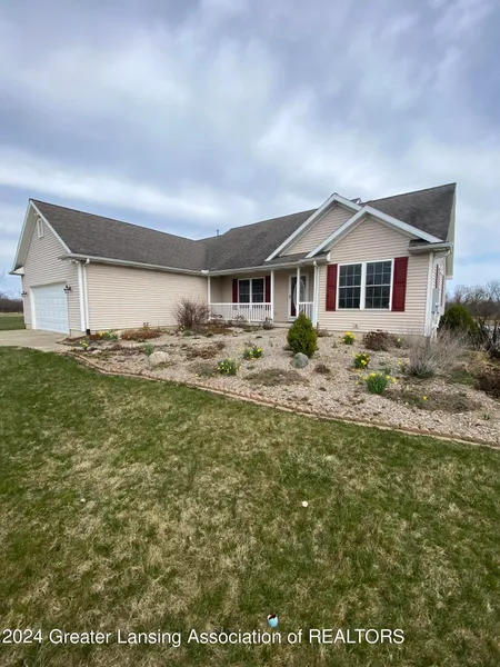 If you're looking for tranquility look no more. Set in the middle of twenty acres and only five minutes from town it's the best of both worlds. This home is positioned to look at the natural surroundings not the neighbors. Front entry welcomes you into the foyer looking at the great room with a 12-foot ceiling, a wall of windows and stone built ins for entertainment equipment or displaying of art. Kitchen around the corner with breakfast bar and dining area with deck access. Three seasons room off the dining area and main bedroom with windows all the way around and an overhead fan. The kitchen has lots of cabinets for storage, a skylight, breakfast bar, appliances will stay and lots of light. Split bedroom layout with main bedroom on the Northerly side of the house. Private bath with double vanity, oversized shower, whirlpool tub and spacious closet. Two additional bedrooms on the other side of the home with a shared bath between them. Laundry off the garage with a coat area and wash tub. Unfinished lower level stubbed for a full bath and egress windows for an additional bedroom. Whole house generator so power outages aren't a concern. Oversized pole barn for storage of machinery and toys. Some of the property is currently leased to a local farmer.