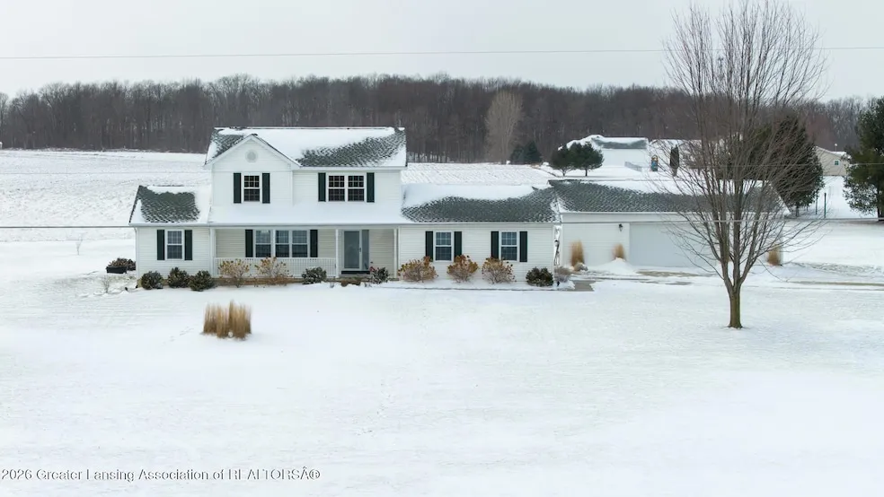 Welcome to 1059 Tori Trail in Charlotte, a beautifully maintained 2-story home offering 4 bedrooms, 2.5 baths, an attached 2-car garage, and a 30' x 40' pole barn. Recent updates include all new windows (within the last 3 years), new flooring, and fresh paint completed over recent years. Major mechanical improvements feature a Lennox furnace and A/C system (2023) with humidifier and UV air scrubber, a 14kW whole-house Generac generator, reverse osmosis water filtration system, and a new well pressure tank. The updated kitchen includes laminate wood flooring, solid-surface countertops, marble backsplash, a pantry, and newer stainless steel appliances. The dining area opens to a Trex deck with metal railings and gazebo, ideal for outdoor living. The first-floor primary suite offers fresh paint, a walk-in closet, and an updated full bath. The main level also includes an updated half bath, a...