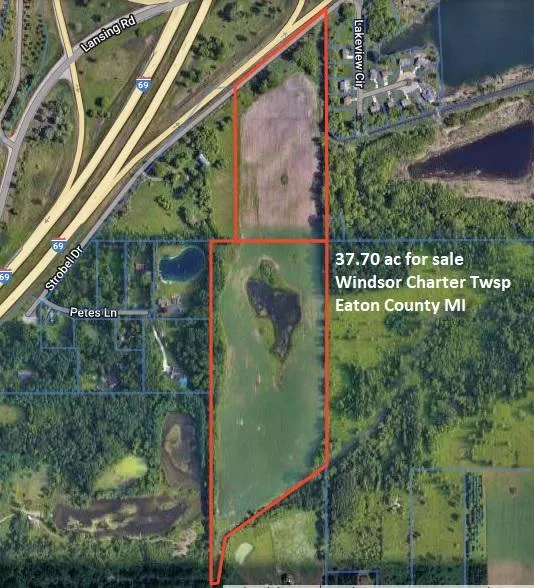 PRIME MULTI-USE LAND FOR SALE located right off I-69 between Charlotte and Lansing with frontage on Strobel Rd. This property could have many uses, from development to building a home to farm lease income to recreational hunting . and then some!