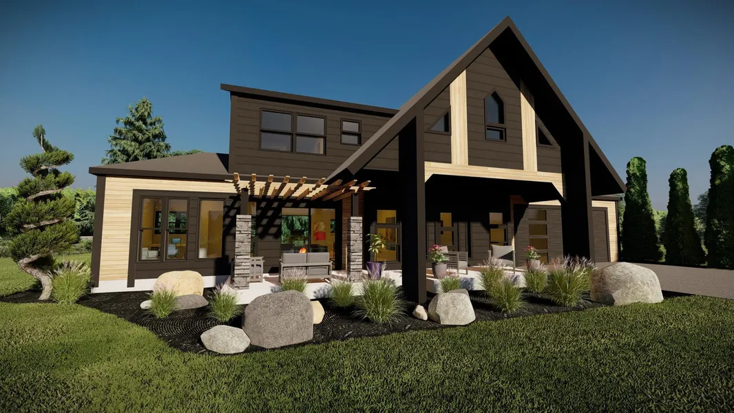 Welcome to Eau Claire's first healthy home by GreenHalo Builds! Net-zero ready, electric vehicle charging station, solar-ready, and low off-gassing materials are standard in our GH healthy homes. This gorgeous to-be-built home is sure to be the talk of the neighborhood. The unique design is inspired by Scandinavian architecture and blended with modern farmhouse flair. It is truly one of a kind. The open main floor includes a sun-filled living room that opens into the front pergola covered patio. The modern kitchen has a large center island, Silestone countertops, custom cabinets, and hidden pantry. There is also a main level flex room that can be used as an office or bedroom. Upstairs you are welcomed by a spacious family room, owner's suite with walk-in closet, 2 additional bedrooms, laundry, and full bath. Choose to have added space with the 20'x8' EcoPod. Build your eco-friendly dream home with GreenHalo!
