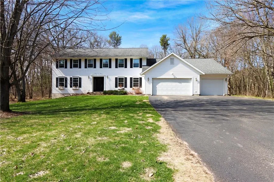 Take advantage of this classy, South side, two story Colonial on a beautiful private 1.49 acre wooded lot! Walk into a large foyer & enjoy this vast 5 (6th) bedroom home with large closets, an open floor plan, kitchen update w/stainless appliances, professional painted white cabinetry & trim throughout the entire home, updated main level hardwoods, two main level living spaces (gas log fp), formal dining, dine-in kitchen, 3.5 bath, 3 car garage AND also including a main level bedroom, laundry full & bath! Finished lower level with two lounge spaces, extra huge bonus room (6th bedroom), in-floor heat, half bath & tons of storage space w/garage access. Plenty of space, fantastic location in a quiet neighborhood, irrigation system, wood deck, fire pit area, wildlife & more! Welcome to Jennifer Lane!!