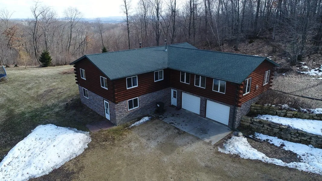 44 acres and beautiful home located in the hills of southern Eau Claire County. Located only 11 miles from Eau Claire, live in the country and have an easy commute to town. Home consists of 4 bedrooms, 2 bathrooms, and a stunning open concept kitchen/dining/living room area featuring custom hickory cabinets with slate and maple flooring. An attached 2 car garage, as well as a separate detached 3 car garage gives you plenty of space for toys and equipment. Acreage consists of some of the best hunting Eau Claire County has to offer. Property has several large ridges that create incredible deer habitat. Lots of great stand locations and some giant deer have been harvested in the neighborhood. Food plots are established as well as water holes, and a trail system will help you access the entire property on ATV.