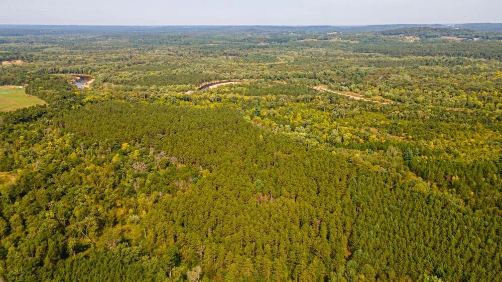 120 wooded acres on the banks of the Eau Claire River near Fall Creek. Predominately red pine and river bottom, the property has been very well managed. The past logging has left plenty of mature oaks blended through the landscape with very strong oak regeneration throughout. Lots of cover, browse, and deer sign makes this property ready to hunt! Hop in a canoe or kayak at Harstad Park and enjoy the scenic paddle to your property, where smallmouth and musky await! There are many great natural funnels on the property as well as several river crossing sites that are well traveled by wildlife! The property is enrolled in the Managed Forest Law (closed) program which gives the owner tax benefits in return for agreeing to timber management practices. Property is managed for both timber growth and hunting purposes.
