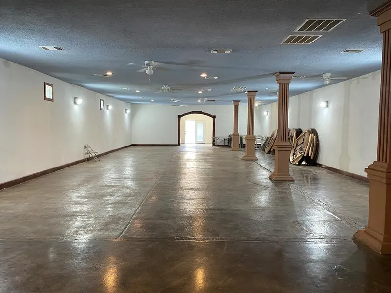 FOR LEASE: Event Center is approximately 4,000 square feet, with Multiple Restrooms, Kitchen, Stage and Concession area. Dance Floor or Table area. There are various outside gazebo areas, pond and large closed in parking area. Separate storage facilities. Many possibilities and Scenarios available. Inside and Outside Stage and Picnic Area.