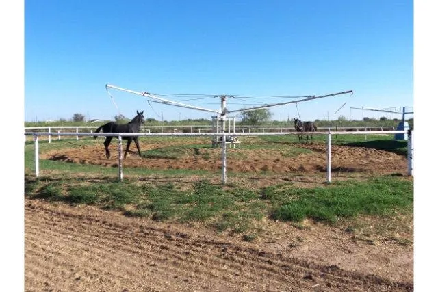 Own a horse farm in Odessa! Home features kitchen island, open floor plan, BBQ patio area, apartment in back, 24 stall training barn, Stallion Barn with 2 large stalls and turn-outs, 1/2 mile racetrack, covered wash rack, 2 tack rooms, pipe fence pastures, 4 turn-out paddocks w/sheds, round pen, 1 electric horse walker and hay barn. Comes with water hauling truck and storage tanks.