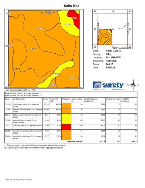 146 acres of great farm land located in Eddy county, Rosefield township. Soil productivity average of 75.7 makes this a great parcel of land to add to your farming operation.