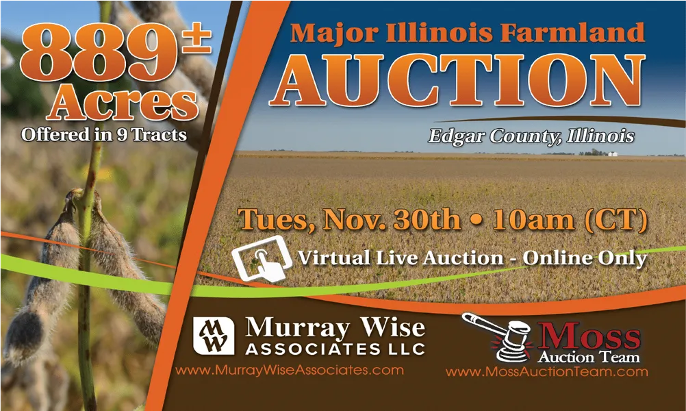 Tract 9: 100 Acres consisting of nearly all tillable productive Edgar County farmland. This tract has road frontage along both County Road 1800N and County Road 1600E.