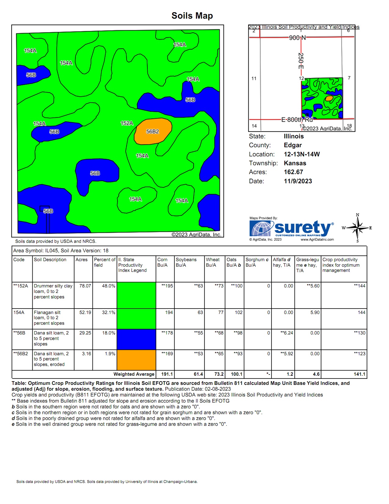 Read MoreSearch for detailed parcel information including; Elevation & Vegetation Maps, Ownership Information, Detailed Parcel Information, Crop History Map, Soil Survey Productivity Data, and more.