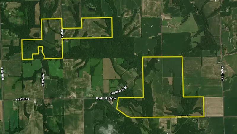 These two large tracts are in southern Edgar County around Bell Ridge. There are approximately 280 acres tillable, 50 acres currently hay fields, and the remainder is wooded with some timber value.