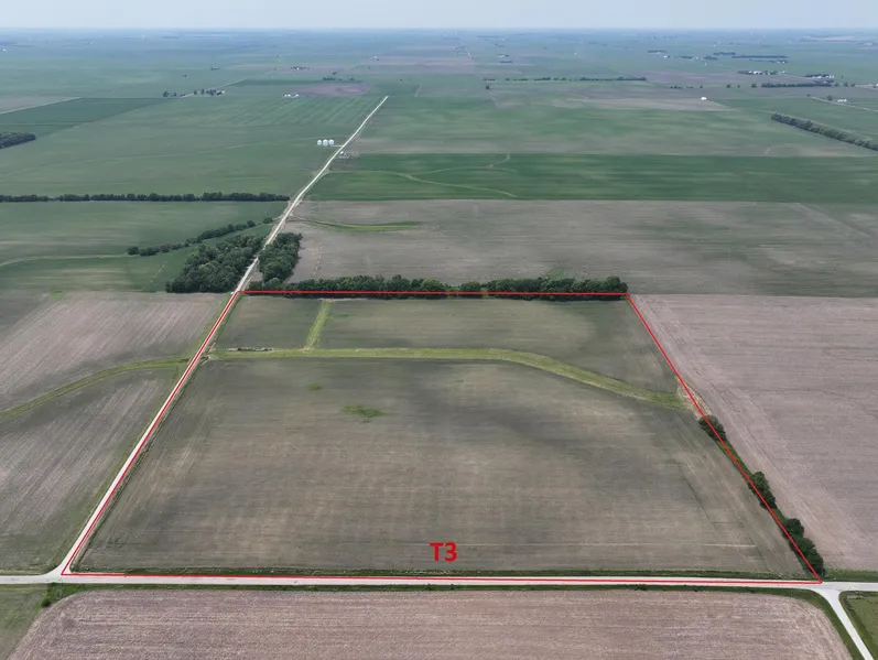 T3: +/- 40.00 acres in total, +/- 34.87 tillable acres, 128.4 PI.