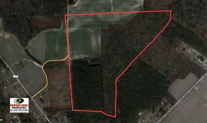 43.5 Acres of Farmland and Timberland For Sale in Edgecombe County NC! This is a fantastic opportunity to own a property that has a great mixture of income-producing agricultural land, planted pines, and natural timberland along Otter Creek. It's easily accessible from South Fountain Road. There are 12 acres of agricultural farmland that's currently being cultivated, 10 acres of planted pines, and 21.5 acres of voluntary growth timber. There is a road system that allows you to easily access the open farmland, and a walking path to the small pond. ATV trails can easily be made and there are numerous places where hunting blinds and stands can be situated.