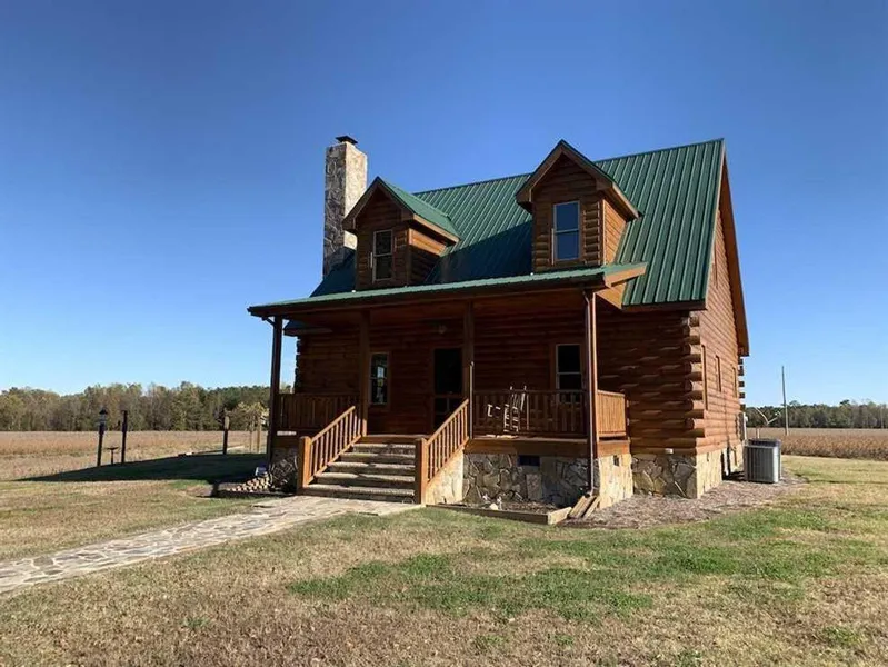 The lawn is roughly 1.5 acres and features two outbuidlings. One on which is over 100 years old. Both buildings were sided with cypress lumber and stained to match the cabin. The land itself is right at 85 acres, 57.75 +/- is farm land that is currently being cultivated for row crop agriculture. The remaining 27.25 acres is woodland and features a mixture of hardwoods and pines. The border of the property is Corn Creek, which attracts a fair amount of migratory waterfowl in the winter months. There is a very dense population of whitetail deer and turkey on the property as well. In fact, we have video of turkeys strutting in the driveway! There is also a private, stocked pond that is roughly an acre. It's a great place to spot wildlife, take the kids fishing one afternoon, or watch the geese land in the fall after the crops have been harvested.