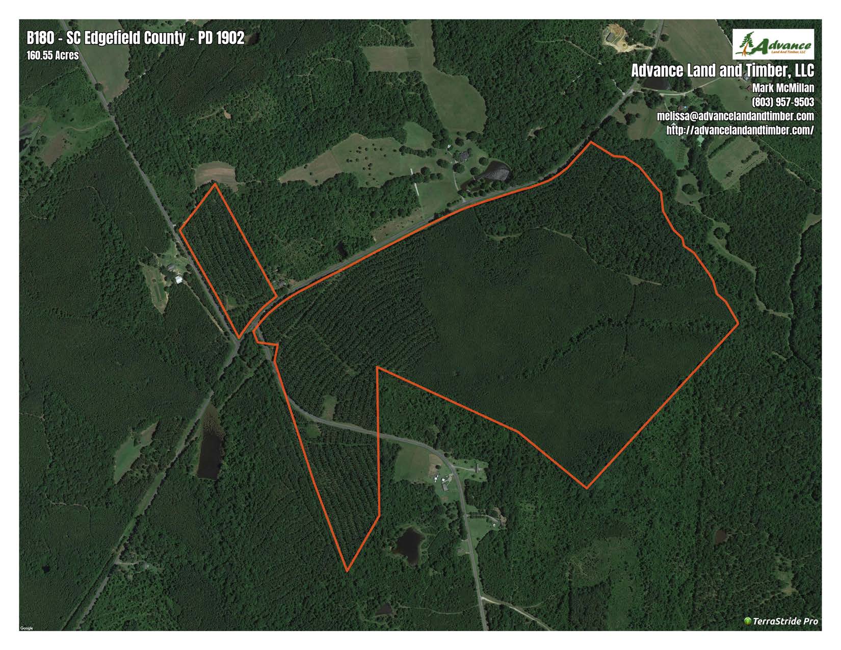 This tract consists of 160.55 acres located at Pleasant Lane crossroads just south of Hwy 378 in Edgefield County. It has been under a forestry management plan for years and currently has over $1,000/ acre worth of timber value, with 153 acres of mature Loblolly pine. This property has frontage on three different paved roads (Sleepy Creek Rd., McDowell Rd., and Gordon Town Rd.) which gives multiple access points, as well as an option for the future owner to subdivide. There are a number of internal roads throughout the property with established food plots and an abundant number of deer and turkey. This property would make an excellent hunting tract as well as a great timber investment or homesite.