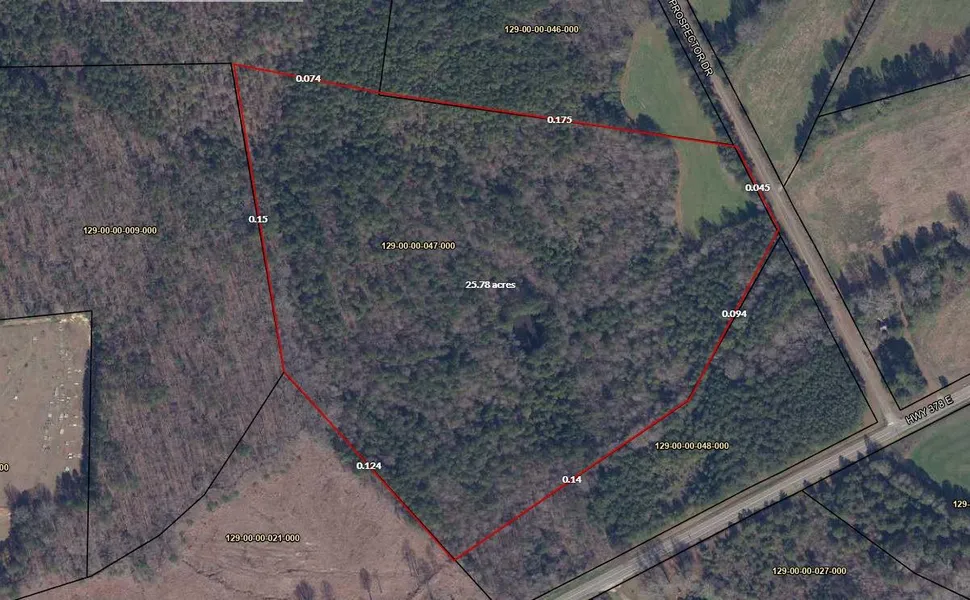 The remaining 25 acres is located across Prospector Dr to the East and includes 14 acres of established agricultural fields for row cropping and 11 acres of mature hardwood and pine timber.