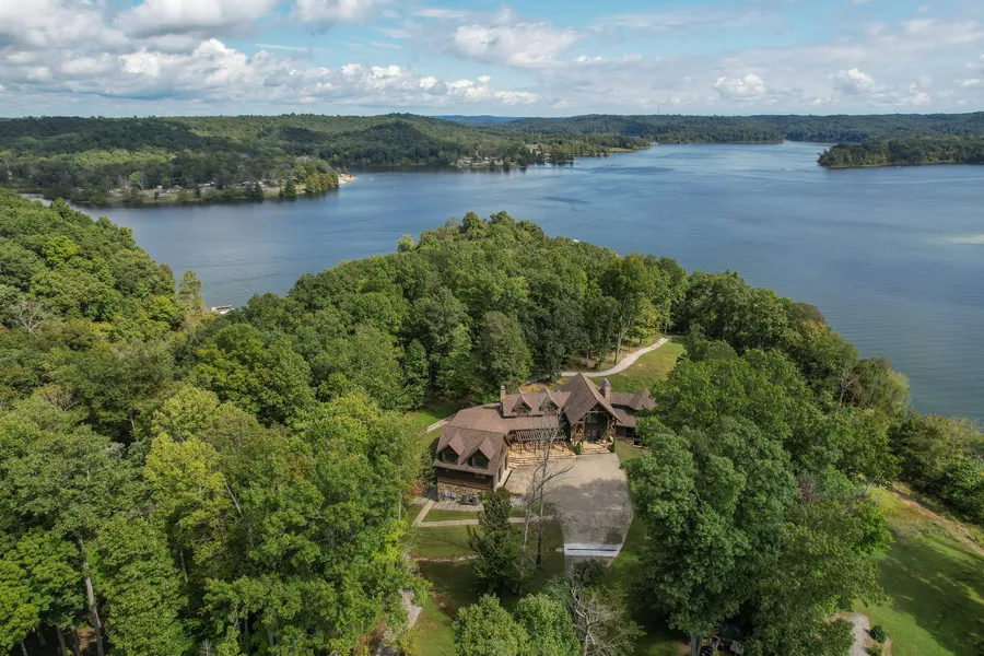 Your own piece of paradise is waiting! Located in gated Ironwood Acres at the end of a cul-de-sac and inside the gated private drive is this absolutely stunning timber-frame built home with nearly 7,000 sq ft of living space! Situated on a 4.8 acre peninsula overlooking Nolin Lake, this impressive multi-level home has so much to offer! Youll be immediately impressed by the spectacular cathedral ceilings, 2-story great room with breathtaking views, hardwood floors, exposed beams, the open floor plan, and incredible lighting! Just past the 2-story stone fireplace is the owners suite, complete with a walk-in closet, soaker tub, walk-in shower with 5 shower heads and the bedroom with coffered ceilings and natural light pouring in through windows all the way around the room. Back in the main room and upstairs is the loft area currently utilized as the owners office. Up another set of stairs is an octagonal solarium with sweeping views of the area! At the center of the home is the kitchen, which includes Amish-made custom cabinets, a large center island, granite countertops, 2 sinks, 2 full size Kitchenaid refrigerators, dual fuel GE Monogram range with double ovens and 6 burner cooktop with griddle, a stone hearth hood, and walk-in pantry. A large laundry room is also located on the main level. Downstairs includes an enormous game room with a gorgeous coffered ceiling and fireplace, 2 wet-bars, 6 additional bedrooms each with adjoining bathrooms and an 11 seat, 3 level theater room! All Amish-made bedroom furniture will remain with the home! Multi-level covered and uncovered decks that wrap the entire home as well as large patios provide plenty of space to sit and enjoy all that Nolin Lake has to offer! One area of the patio includes the 3rd fireplace and is prepped and plumbed for an outdoor kitchen! Also included is 2.5 car garage with 10 doors (allowing for boat storage) and a 3rd lower level garage for lawn equipment and additional toy storage. Spend all day on the water accessed by the *private* dock that includes a personal watercraft slip and enjoy cool nights around the cozy firepit. A 2nd laundry hookup on the lower level, 500 gallon buried propane tank, 6 zoned HVAC systems, and 2 tankless water heaters complete this spectacular home. Total cost to build was in excess of $2million!! Dont miss the opportunity to own this one-of-a-kind home!