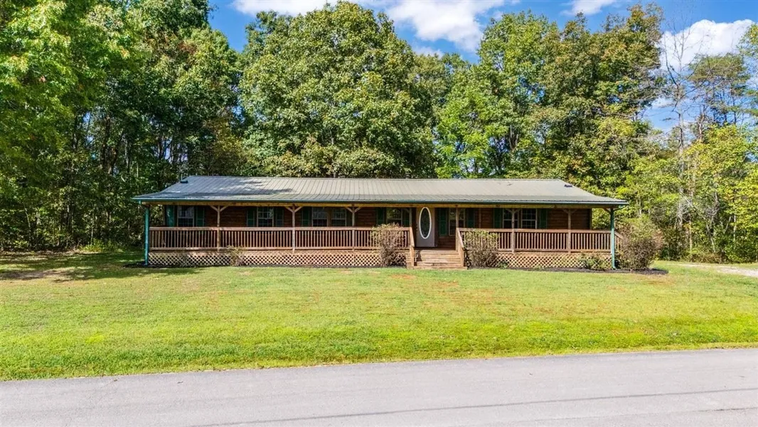 This 3 bedroom 2 bath is nestled on 0.79 acres within minutes of Nolin Lake, and public boat ramp access. An open floor plan with wood burning stone fireplace, creates a cozy and welcoming feel when entering, and the split bedroom floor plan is perfect for just about anyone. With a covered front porch, and back deck there is plenty of space to enjoy the peace and quiet of country living. The detached garage is perfect for additional storage, and tidy landscaping makes for a low maintenance yard. Sellers are offering a one year home warranty within a negotiated offer. Contact listing agent today for your private showing. One or more photo(s) was virtually staged.