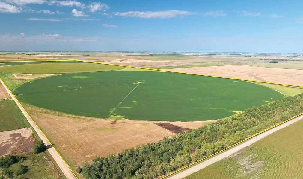 TRACT 3: 166+/- ACRES located south of Kinsley in Edwards County. Quality irrigated farm with 125+/- wet acres under pivot. Soils are predominantly Farnum and Funmar loams. This farm also features a row of thick timber on the south side, making for additional wildlife habitat.