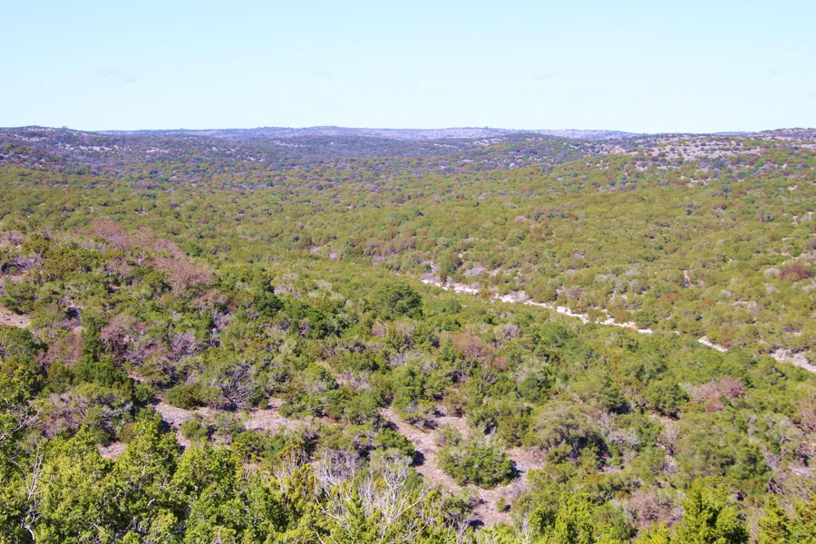 Lots of live, Shumard and shin oaks, also pinion pine and cedar