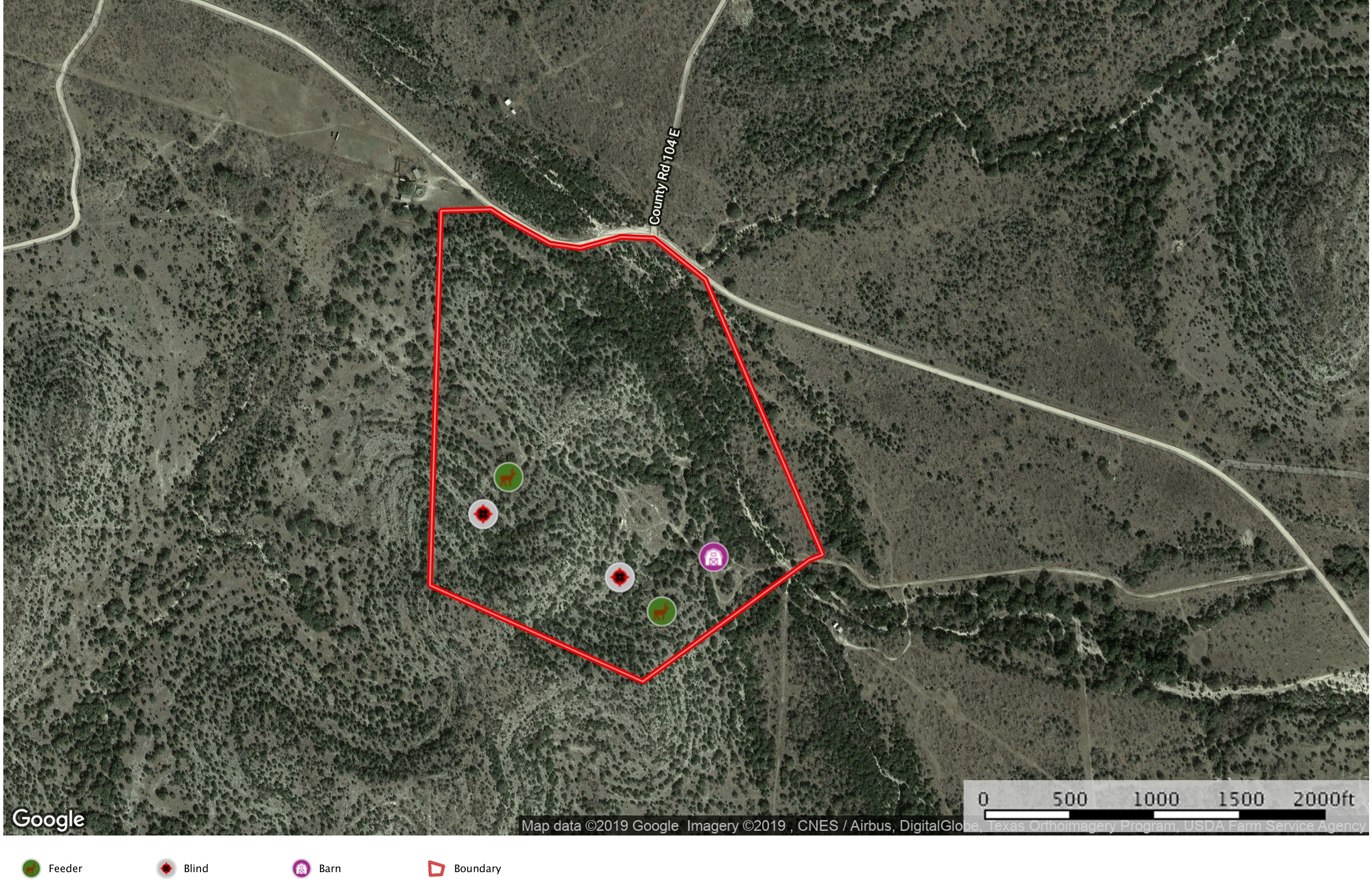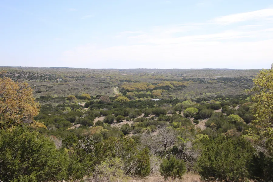 Mixture of cedar, live oaks, shin oaks providing habitat for whitetail, axis, turkey, hogs, aoudad