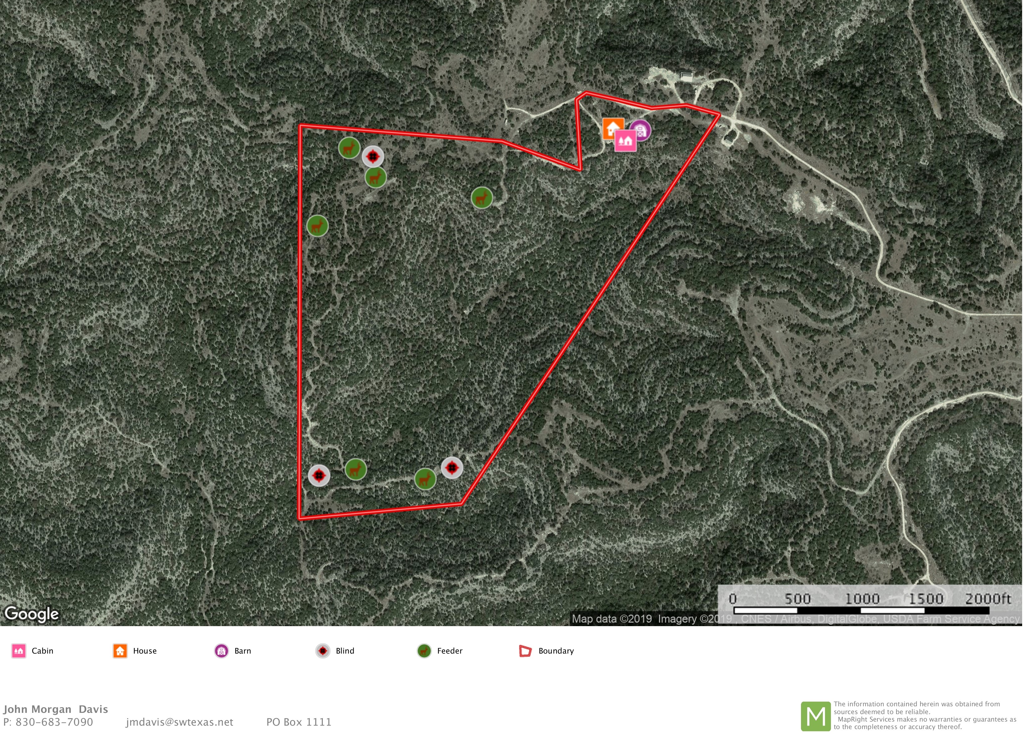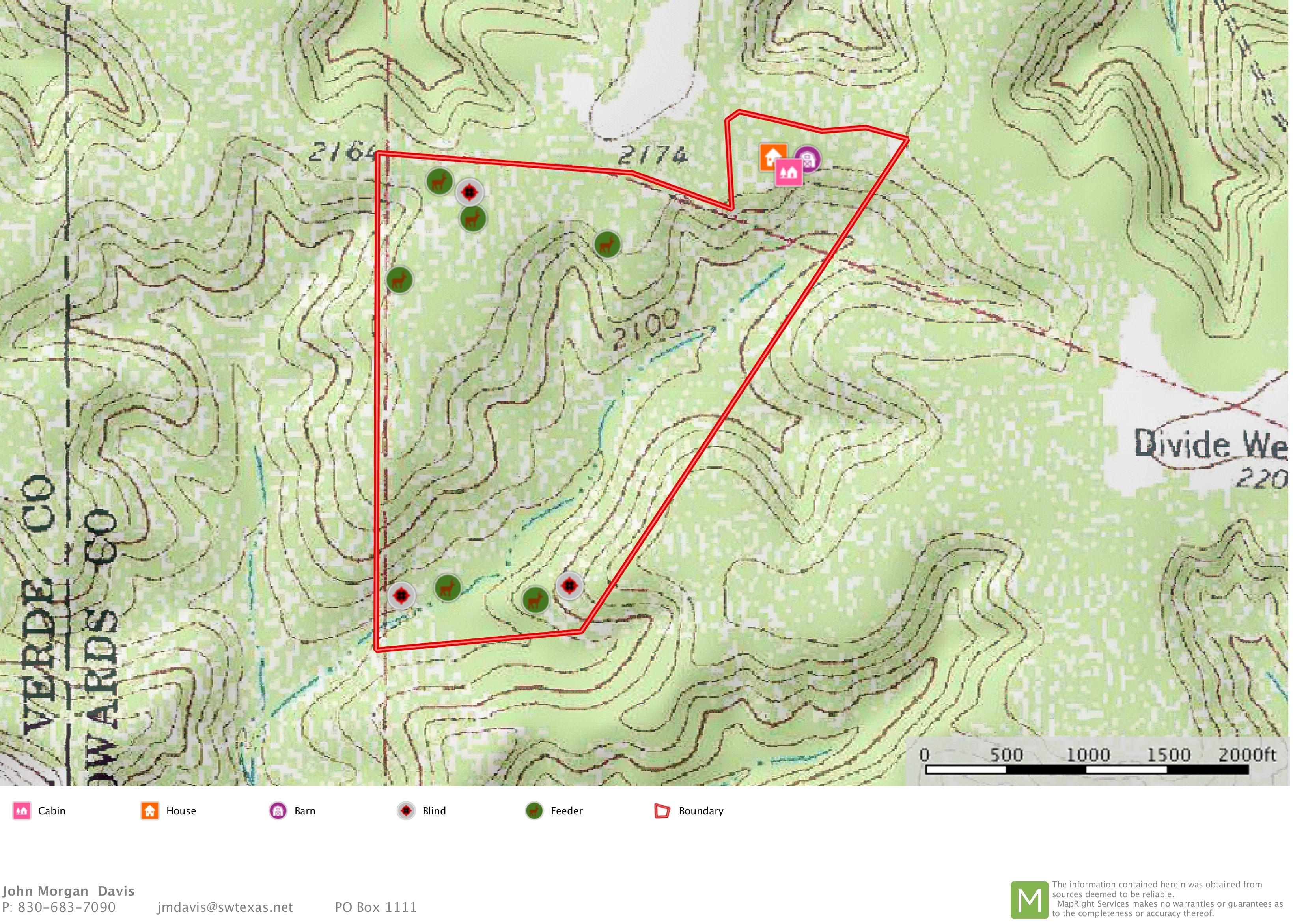 Located in western Edwards county. Very secluded and remote; yet good, easy, well maintained access to the property. 2 very nice, neat, like-new cabins completely furnished with all the comforts of home. Covered porch allowing for spectacular views across the property. Electricity and water. Metal barn with middle bay containing cleaning station for wildlife, separate room to store ATVs, tools, feed, and third area for additional storage. Improvements strategically placed at the front of the property leaving most of the property undisturbed for the wildlife. Property backs up to large 4000 acre neighbor all along the western boundary. Property has been extensively managed and maintained for several years providing supplemental water and feed all year round constantly improving the quality and quantity of the wildlife. The terrain is gentle rolling to slightly ...