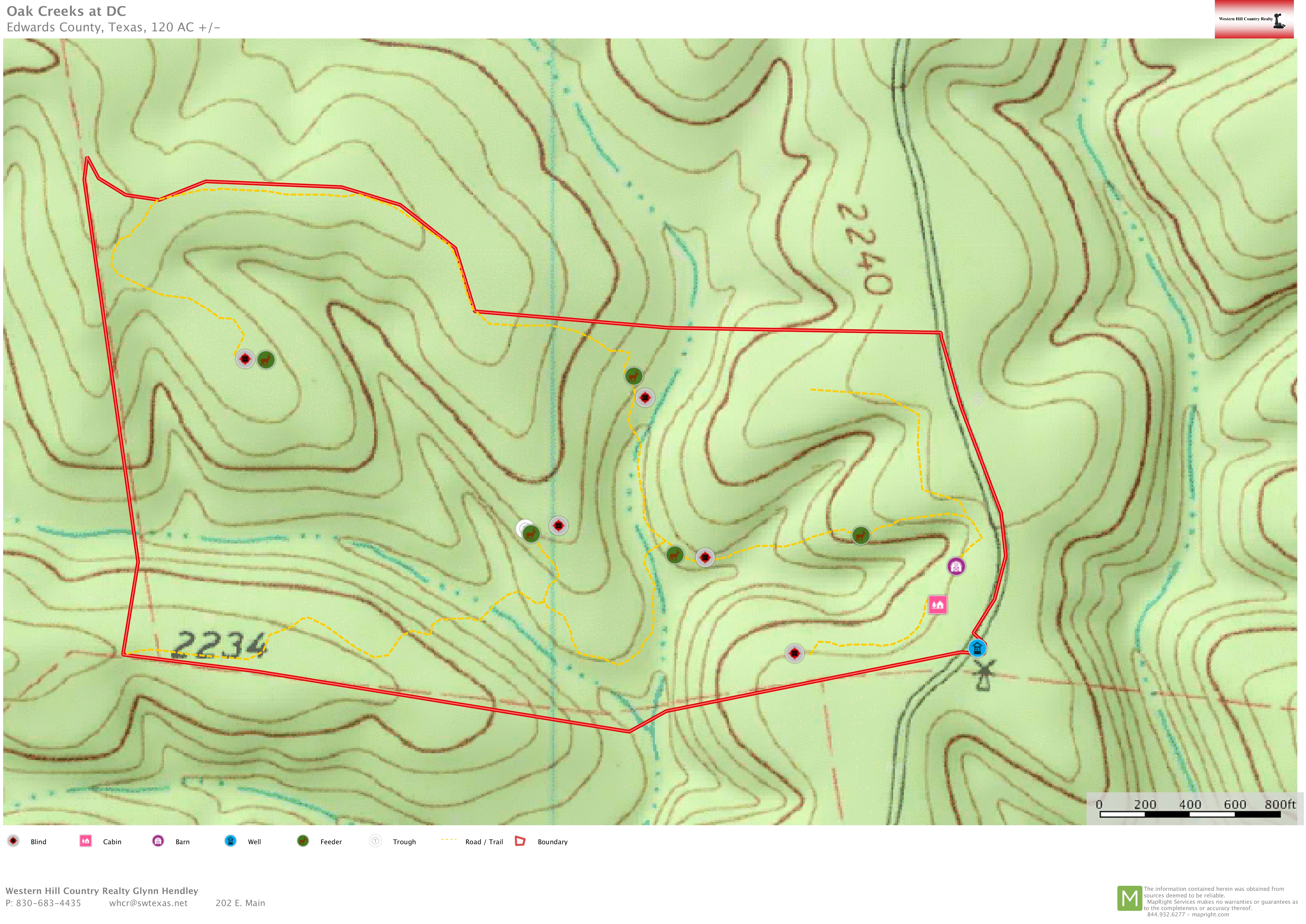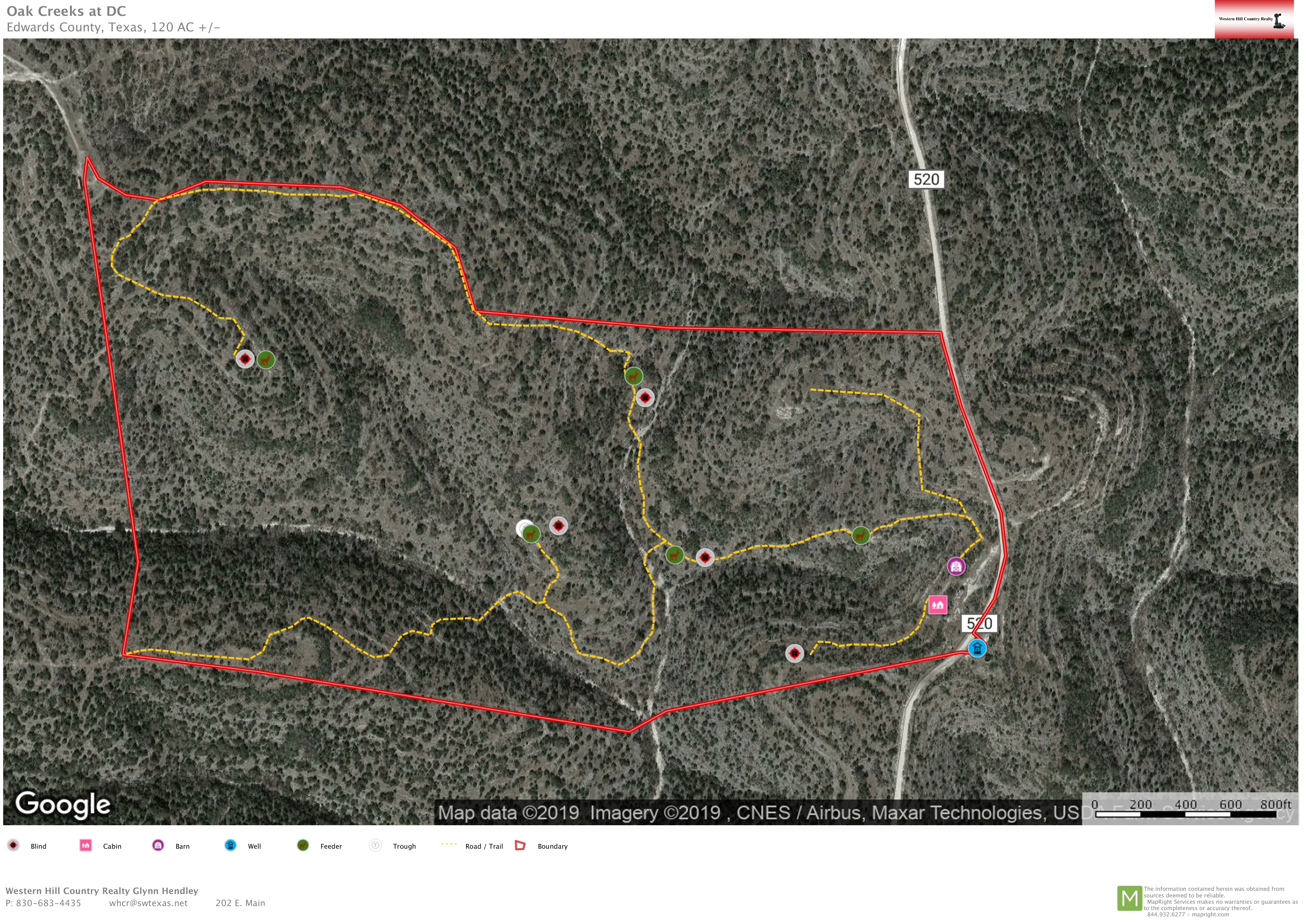 Located in central Edwards county. Less than 15 minutes south of Rocksprings. Great access; only +/- 3 miles off hwy via county maintained road. Scenic, rolling hills to rolling steep canyons. Seasonal dry creeks lined with a variety of species of oak trees carve out unique rock outcroppings. Water, electricity. +/- 750sqft cabin with a 184sqft screened in porch overlooking the ranch offers 20-mile westward views. +/- 300sqft ATV storage and workshop. 8 x 20 storage container. Miles and miles of ATV trails throughout property. Water lines distributing water to several troughs throughout the ranch. 5 blind and feeder areas. Game includes whitetail, turkey, hogs, axis deer, aoudad and several other free ranging exotics. There is a nice, big travel trailer available separately.