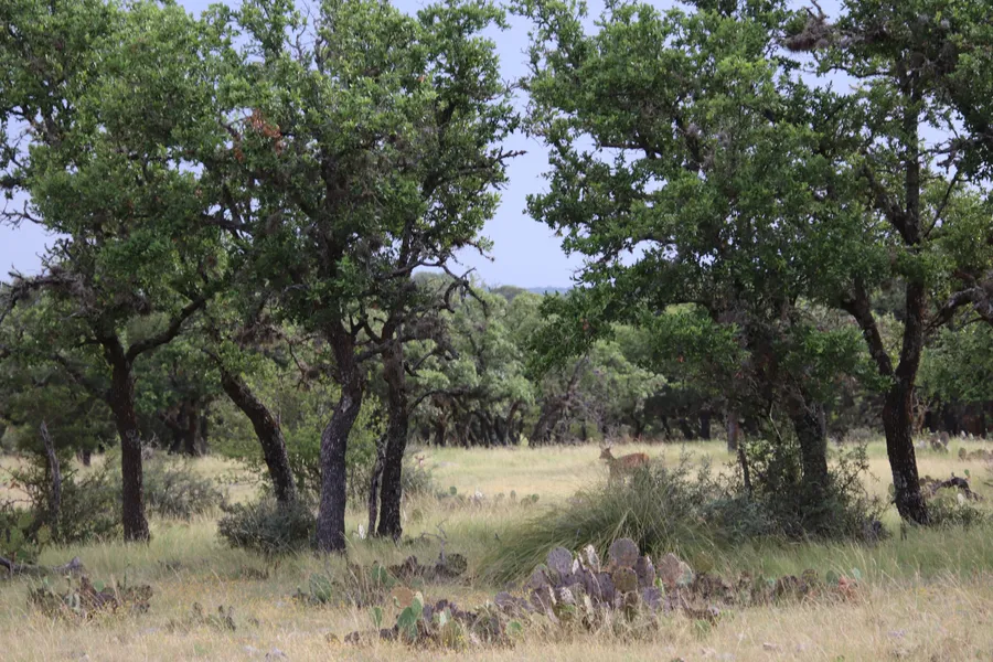 The valleys have a thick live oak cover. The level hilltops have plenty of cover as well. Dont let the aerial maps and google earth
