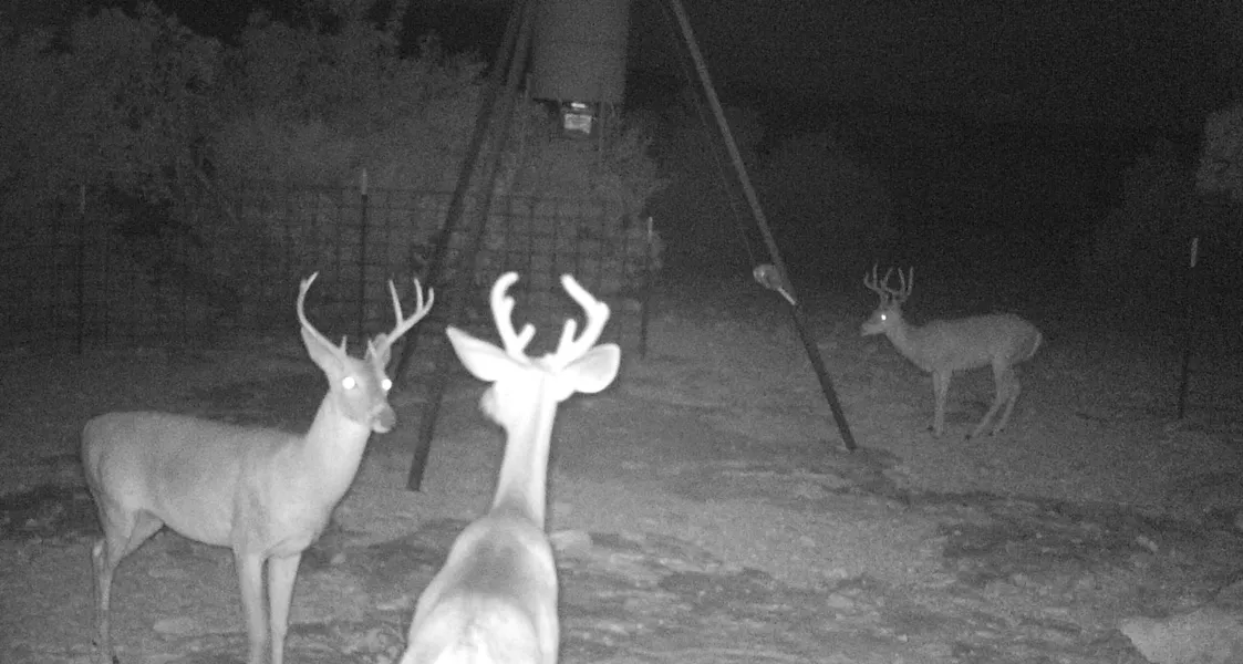 Great wide valley with great natural boundaries utilizing the ridge line as the boundary on three sides and the easement road on the fourth. Electricity is run and they are harvesting rainwater for animals and camp use. This area is known for high populations of whitetail and various exotics, including Axis and Aoudad. Blinds and feeders are set up and ready to go. The travel trailer under cover will also convey.