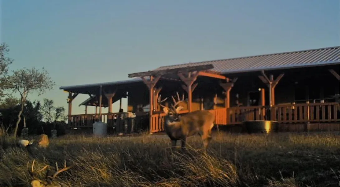 This Custom Built home sits on this 205 acres of beautiful live oak terrain, with every bit of the land usable and accessible. The property is currently under a wildlife management plan for the native animals which also provides a property tax exemption. The turn-key set up will have you enjoying the land immediately. There was no expense spared on the 1800 sq. ft. home. Hardwood floors, custom counters and cabinetry, all add to the uniqueness of the home. There are 4 bedrooms with one large bathroom in the main house, while there is an full outdoor bathroom with laundry room under the patio. Blinds and feeders are running and ready for you, as well as several watering stations. Roads throughout the land are easily travelled in a two wheel drive pick up. Large barn built around two shipping containers with tons of storage and workspace. Seller has drilled his own water well with solar capabilities, established rainwater harvesting and is also tapped to community wildlife water. Sellers will be leaving all the furnishings (minus two armoires, mounts), several ATVs, Kubota Tractor. All tools and equipment in barn will also convey.