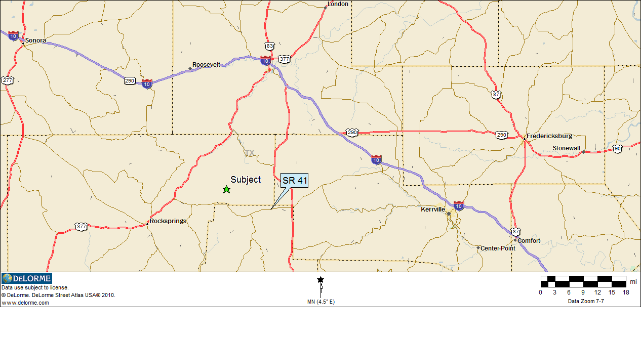 20 minutes east of Rocksprings and 45 minutes west of Kerrville