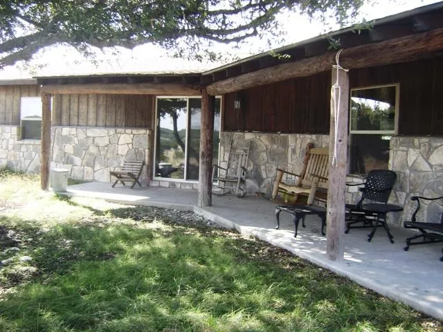 This 148 acre game ranch is high fenced and loaded with Ibex, Audad, Axis, Blackbuck, Fallow and Whitetail. Top of the line feeders, 1st class blinds. It is located just one-half mile off Hwy 377 N of Rocksprings. The cedar/stone home offers 1st class accomodations for family and guests. Watch the wildlife roam as you sit on the back porch that overlooks the scenic hills. Home is 2 Bed/2Bath, large utility room, living room, dining room. Kitchen has walk in pantry, tile counter tops. Tile flooring throughout the home. Terrain is rolling with good cover of variety of oaks, some cedar. Not located in a SUBDIVISION! No POA! REDUCED AGAIN!! Original price of $500,00. Now priced at $430,000.