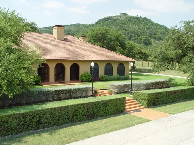 Only 1 mile northwest of Barksdale, this ranch features 1594' to 2139' elevations, 3 permanent springs, water well, live oak, shinoak, 12,289 feet of TX Hwy 55 frontage, a 4,825 square-foot luxury three bedroom, four bath, Spanish-style villa with wrought-iron fenced security gated compound, concrete drive and parking area, Blue Haven heated swimming pool with waterfall, Jacuzzi, professionally landscaped grounds; 2131 square-foot four bedroom, two bath, bunkhouse; 1,243' guest home and 918 square-foot manager's home. The ranch also includes a 38' by 60' metal barn, a 70' by 100' metal barn, an 8' by 16' tack house, miles of roads and game fencing with wildlife management facilities, a spring water system with 91,000 gallons in 3 concrete reservoirs and a second spring water system with a large reservoir and pond. Most of the back of the ranch is rugged hills with awesome views while most of the highway frontage is gently rolling grasslands with large oaks. The luxury home is located at the foot of the hills with excellent views overlooking the large oak grasslands populated with dove, quail, turkey, axis and whitetail deer. This is the best luxury ranch buy in the Texas hill country.