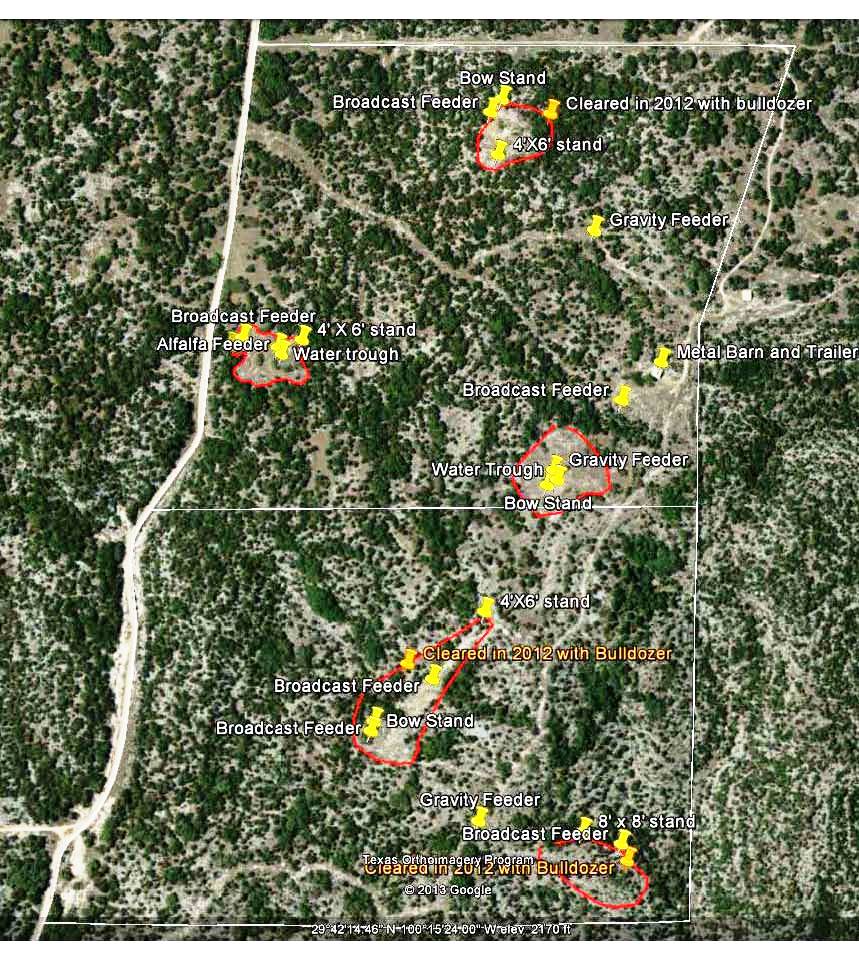 Located in Southern Edwards County 14 miles W of Barksdale. All weather, county maintained road frontage. Electricity & water in place. 30'x40' well-constructed cover over 30'nice & clean travel trailer. Beautiful views from campsite. Gently rolling heavily wooded terrain with cleared, open shooting areas. Water for wildlife throughout ranch. Miles of internal roads allowing access to all parts of property. Perfect hunting tract with excellent quality whitetail, turkey, hogs, axis & aoudad. Owner has fed protein year round for past six years. Four first class rifle stands, five nice bow stands, three protein feeders, six all season spincast feeders. 66,000 acre low fenced neighbor. Wildlife exempt taxes. Ready to enjoy! (listing #280)