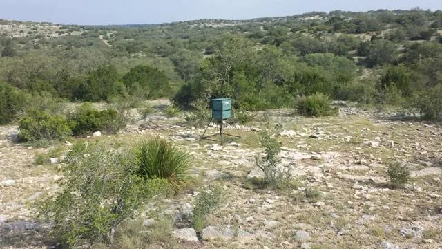 Located in SW Edwards County. Easy access. Nice and tidy 280sqft cabin with bunk room and full kitchen and bath. Shared water well just around the corner. 150sqft storage shed. 3 nice blinds. 3 quality feeders. 2004 model Polaris Ranger with less than 100 hours. Property sits between two hills creating a beautiful live oak valley which is a perfect habitat for wildlife. Rolling hills and level valleys. Seasonal dry creek bed sweeps east and west through center of property. Whitetail, turkey, hog, axis deer, aoudad. Ag exempt taxes. Many extras convey with sale. (listing #31)