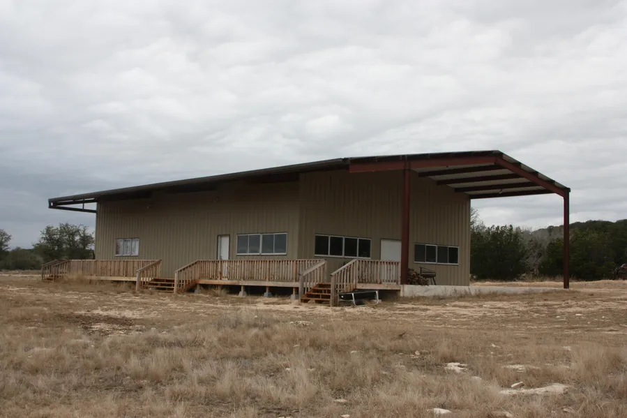 The lodge is a barn-dominium, having half of the building set up as an indoor garage area, and the other half finished out as a two story living area. The bottom floor of the living area consists of a large kitchen/dining/living room area along with a master bedroom and full bath. Above that sits three additional bedrooms and a full bath. All appliances are included, along with flat screen TVs and an internet booster inside the lodge. Located next to the lodge is an outdoor structure to park machinery, ATVs, ranch equipment, etc.