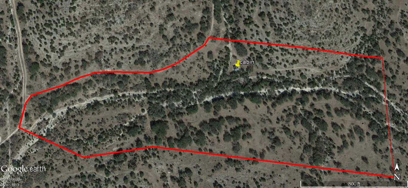 Located in west central Edwards County. Great access off US377 via all-weather roads. Well-constructed, nice and neat 852sqft cabin with 108sqft covered parking/garage area, full bath, hog water-ready to enjoy! Large front porch-perfect for relaxing and watching the sunsets. Cabin has top of the line water catch system with strong pump-just as efficient as water well. Property is gently rolling, heavily wooded with abundant large live oaks. Large seasonal creek bed sweeps from east to west through property. 3 great hunting areas cleared, trimmed and manicured making perfect shooting lanes. Shooting table and shooting range. Blinds and feeders. Game includes whitetail, turkey, hog, axis deer, and occasional aoudad. Small earthen pond in northeast corner of property. Two separate water catch systems with holding tanks and watering troughs. Jeep in perfect running condition conveys. Great internal road system. Ag exempt taxes. (listing #52)