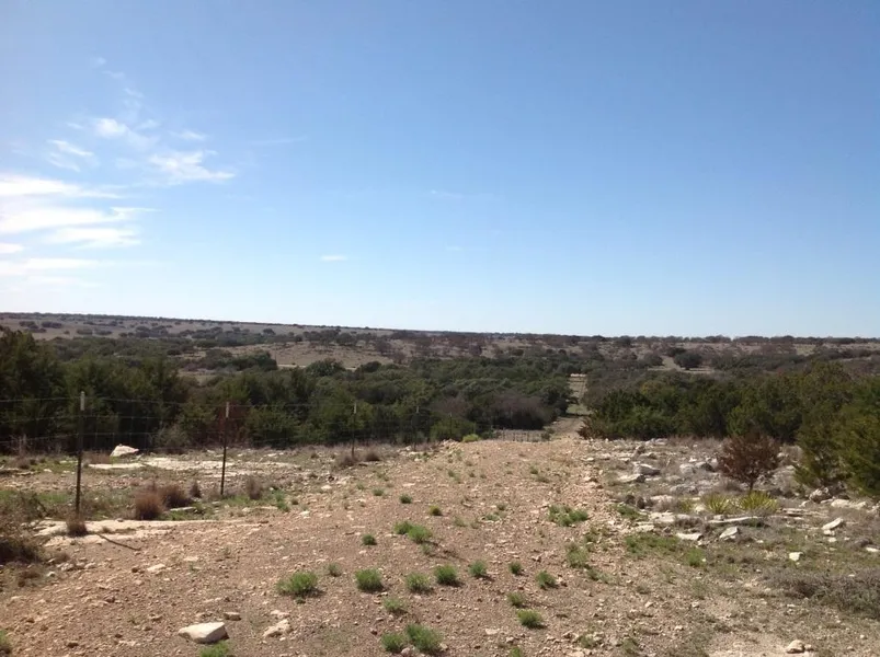 104.85 acres. The property is fenced and cross fenced and has a well sharing agreement with the neighbor. There is electricity and great long range views. This property is loaded with whitetails, axis and turkey. This would make a great weekend recreational hunting ranch.