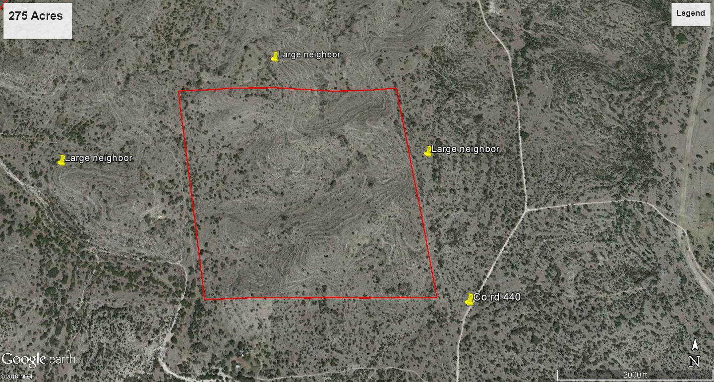 Located in west central Edwards County. Not in a subdivision. Surrounded by large, low fenced neighbors. Low fenced on 3 sides, 1 side not fenced. Electricity very near. Gentle rolling type terrain, lots of live oaks and live oak thickets. Tremendous views from hilltops. 100 yards off the county road, 4 miles off the highway, 25 minutes from Rocksprings. Part of a large operating sheep, cattle, and goat ranch for over 110 years. Great area for very large whitetail, turkey, axis, aoudad. Ag exempt taxes. Additional acreage available. Survey pending.