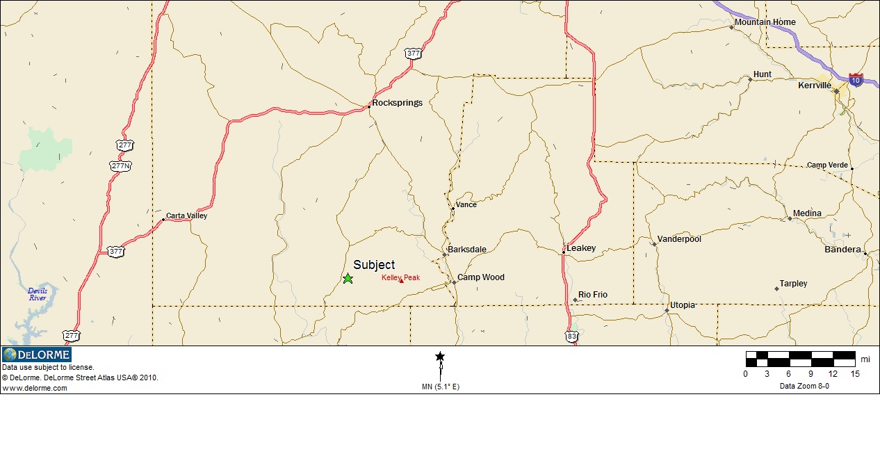 Located in South Central Edwards County-14 miles west of Barksdale; 22 miles South of Rocksprings. Only mile from maintained County Road. End of the road property with a private locked gate. Terrain is gentle rolling to level making all 224 acres useable land with miles of internal roads allowing access to all parts of the ranch. Heavily wooded with nice cleared areas for blinds and feeders. Water and electricity in place, 45 X 50 metal cover with travel trailer. 30 mile breathtaking views from the campsite. The neighbor to the south and west is 66,000 acres low fenced. This is one of the smallest ranches in the area. Game includes Whitetail, Axis, Aoudad, Turkey, Hogs, Elk.