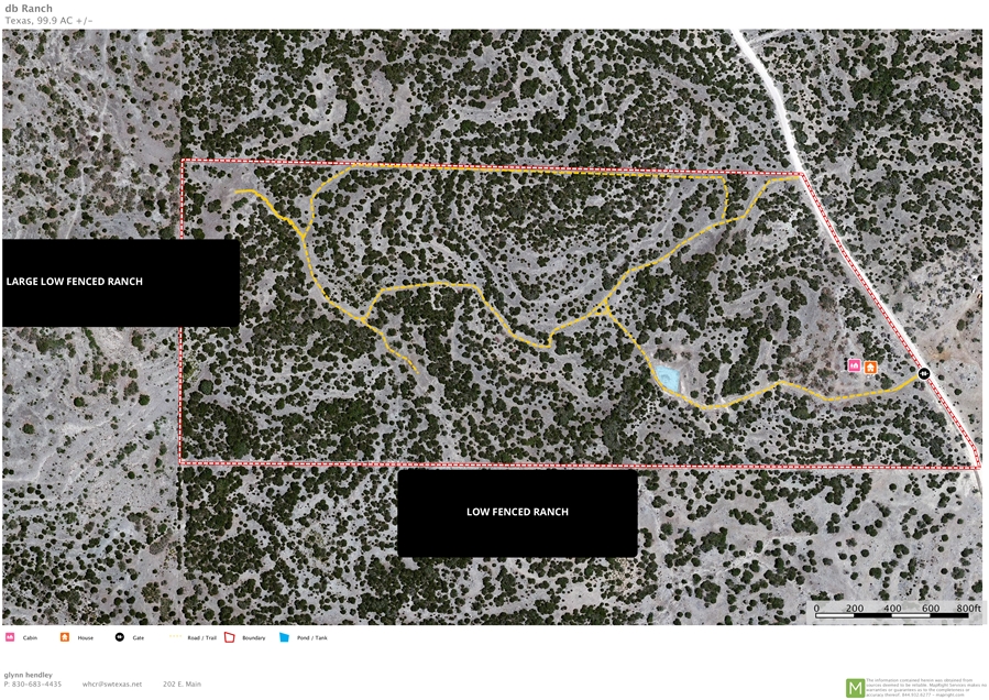 Located in central Edwards County less than 12 minutes from Rocksprings. Access is superb; only 1 mile of maintained county road from highway. Moderate to heavily wooded vegetation. Rolling terrain providing spectacular views. Completely fenced with private entrance off the county road. Private water well and electricity in place. Nice and neat 2/1 cabin with nice porch offering super views (sleeps 6). Additional bunk room that sleeps 4. 8 x 20 sea container for storage. Ranch is well watered with a watering trough and large earthen pond. Miles of internal roads. 2 blinds and 2 feeders. Game includes whitetail, turkey, hogs, axis, aoudad and several other species of free ranging exotics. No restrictions. Not part of a subdivision.