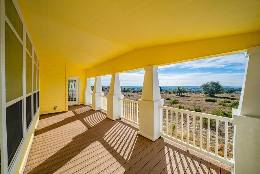 A must see, highly upgraded 2800 sq ft Karsten factory constructed home. That sits on a crushed granite foundation pad. On the outside you will find hardie board siding, a metal roof and roughly 900 sq ft of porches. This well built home features exterior walls constructed out of 2x6 studs with R-19 insulation and double pane windows making it both extra strong and efficient. Once inside this 3 bedroom, 2-1/2 bath home you will find many upgrades such as wood floors throughout, 9 foot ceilings, solid surface counter tops, stainless steel appliances, crown moulding, trayed ceilings, a large laundry room, a wood burning fire place and a den/formal dining room. This property also features an oversized garage, 20x30 green house and is perimeter fenced with an electric gate entrance. As for the land itself this 36+/- acres has been partially cleared allowing for livestock to graze, but enough cover has been left to wildlife protection from the elements. This area is known for its abundance of wildlife including axis and white tail deer, rio grande turkey and wild boar. Beautiful views of the hill country can be seen from many points of this property including the house.