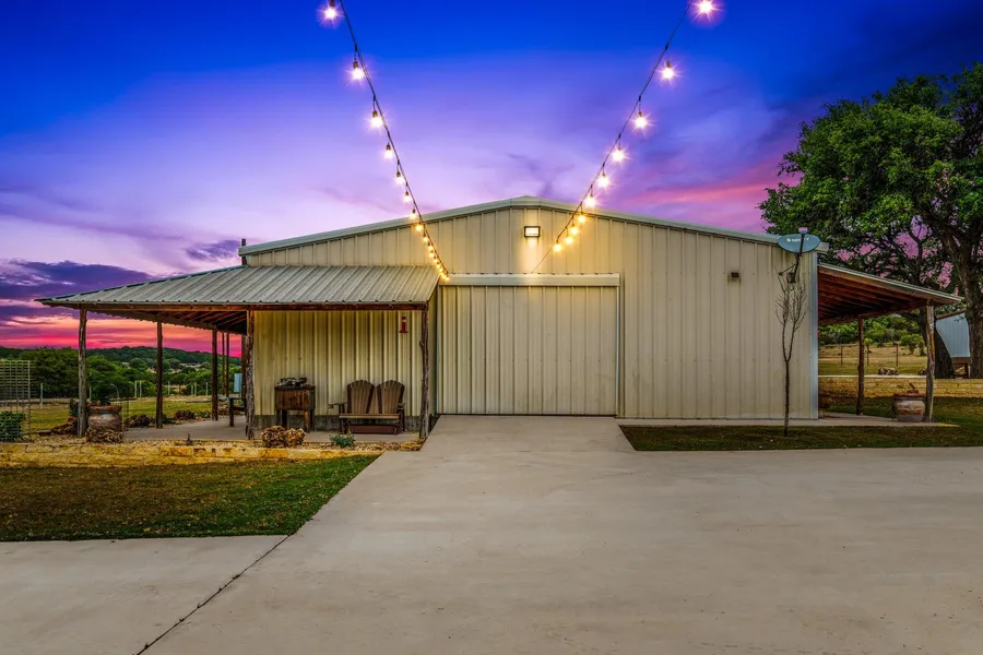 Improvements: The main house is a well built barndominium style 2 bedroom, 1 bath structure built in 2017. Styrofoam insulation, new septic (2022), covered/enclosed patio or storage area, 4" plumbing, and sprinkler system all in place. Modern kitchen, wood ceilings, updated bathroom, satellite tv, pool table, and bar area make these accommodations very comfortable. A recent addition of a game/trophy room, master bedroom, additional bathrooms, and storage closet is attached to the main barndominium. It has been framed up, concrete foundation, plumbed, windows installed. Ready for the next owner to finish out to their liking. In addition to the sleeping areas there is a 32X25 metal shop with concrete floor and roll up doors. Covered parking and cooking areas. Concrete drive way from the front gate to the main compound (approximately 1,700 feet). Located at one of the most scenic areas of the property is a two story guest house with electricity. 85% completed, this guest house has beautiful views to the west as well as overlooking a deer feeder for wildlife viewing. Rancho Rio Lobo is completely high fenced and has a wonderful rock and metal entrance with a custom gate and landscaping.