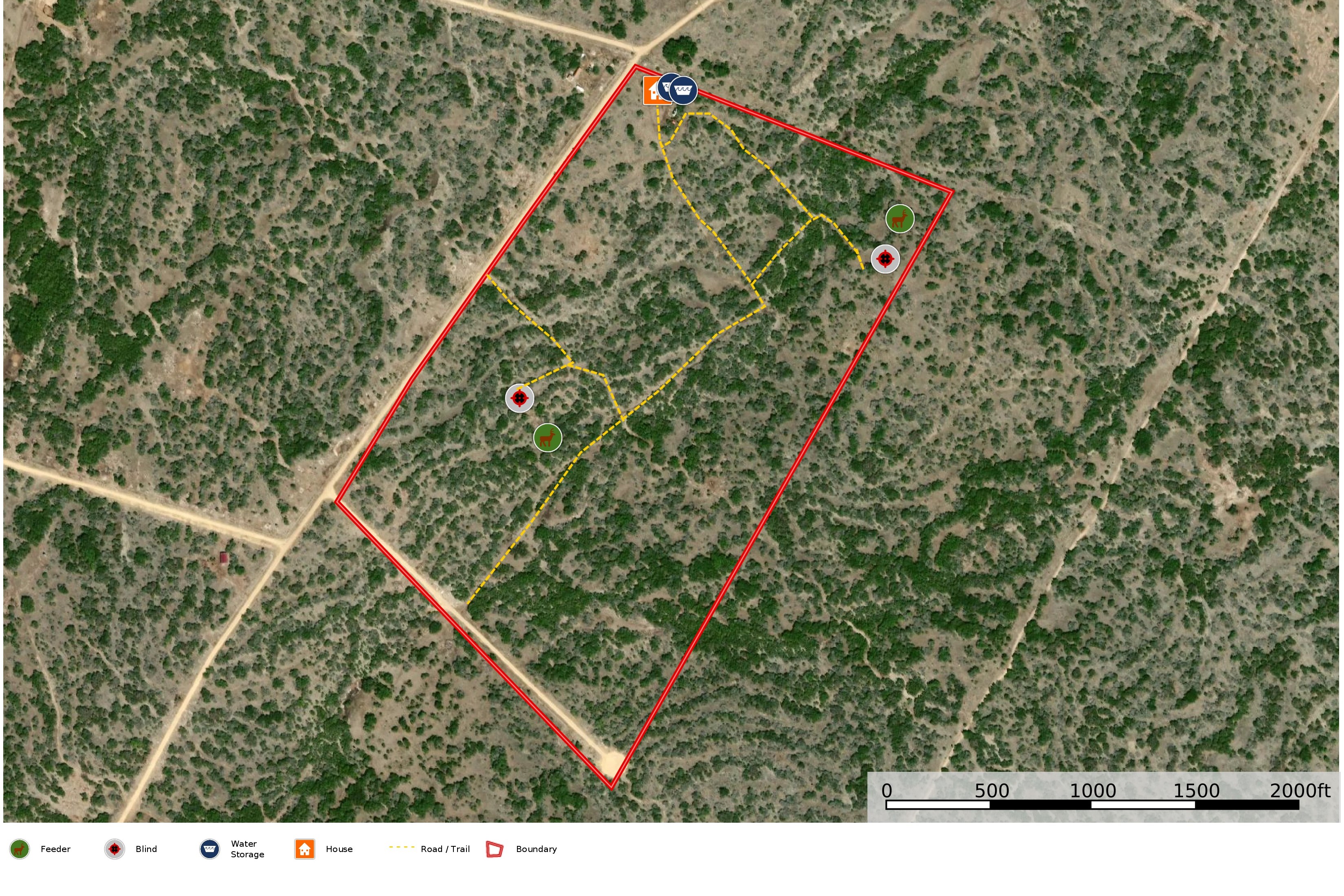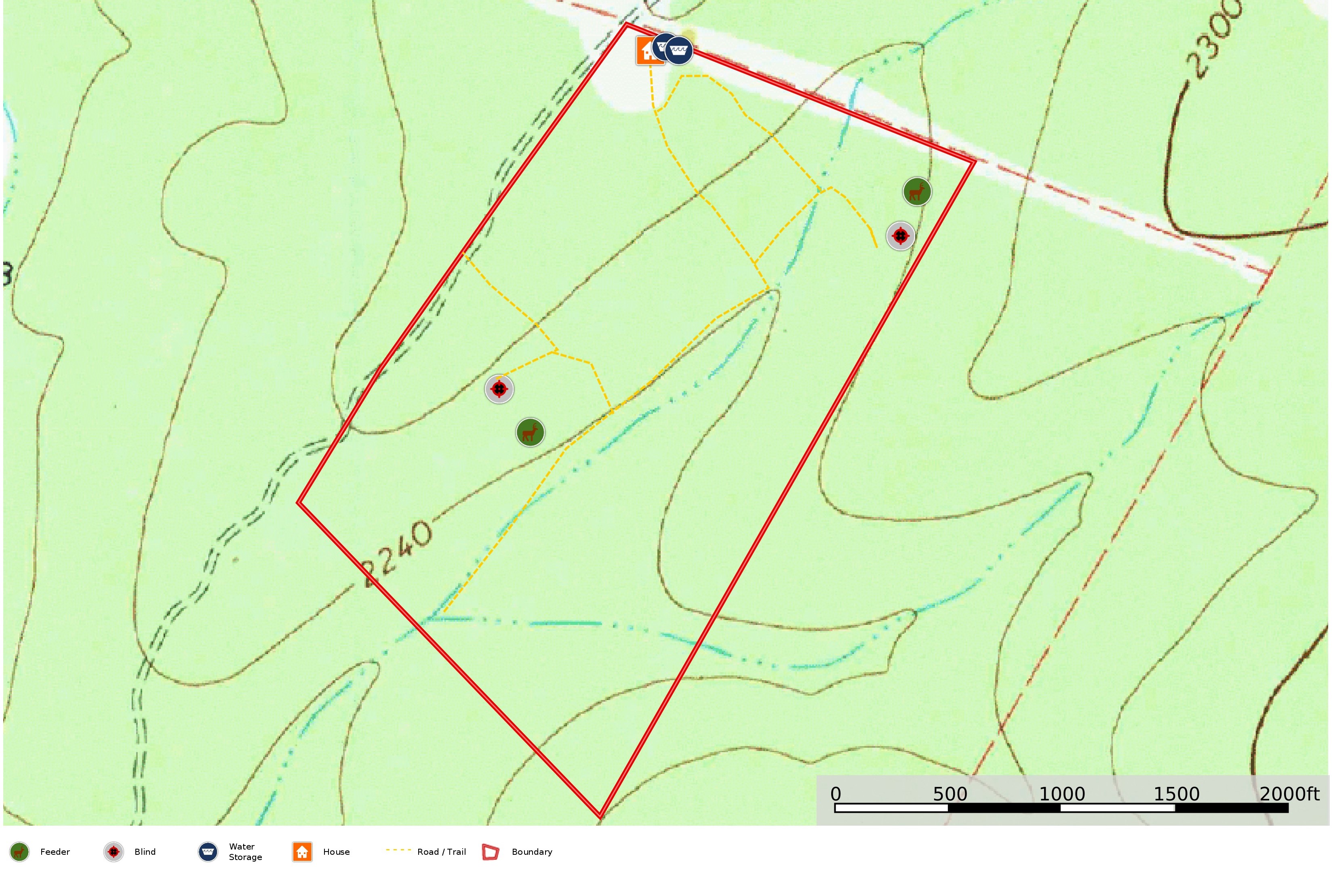 2 blinds, 3 spincast feeders, 2 protein feeders, watering trough