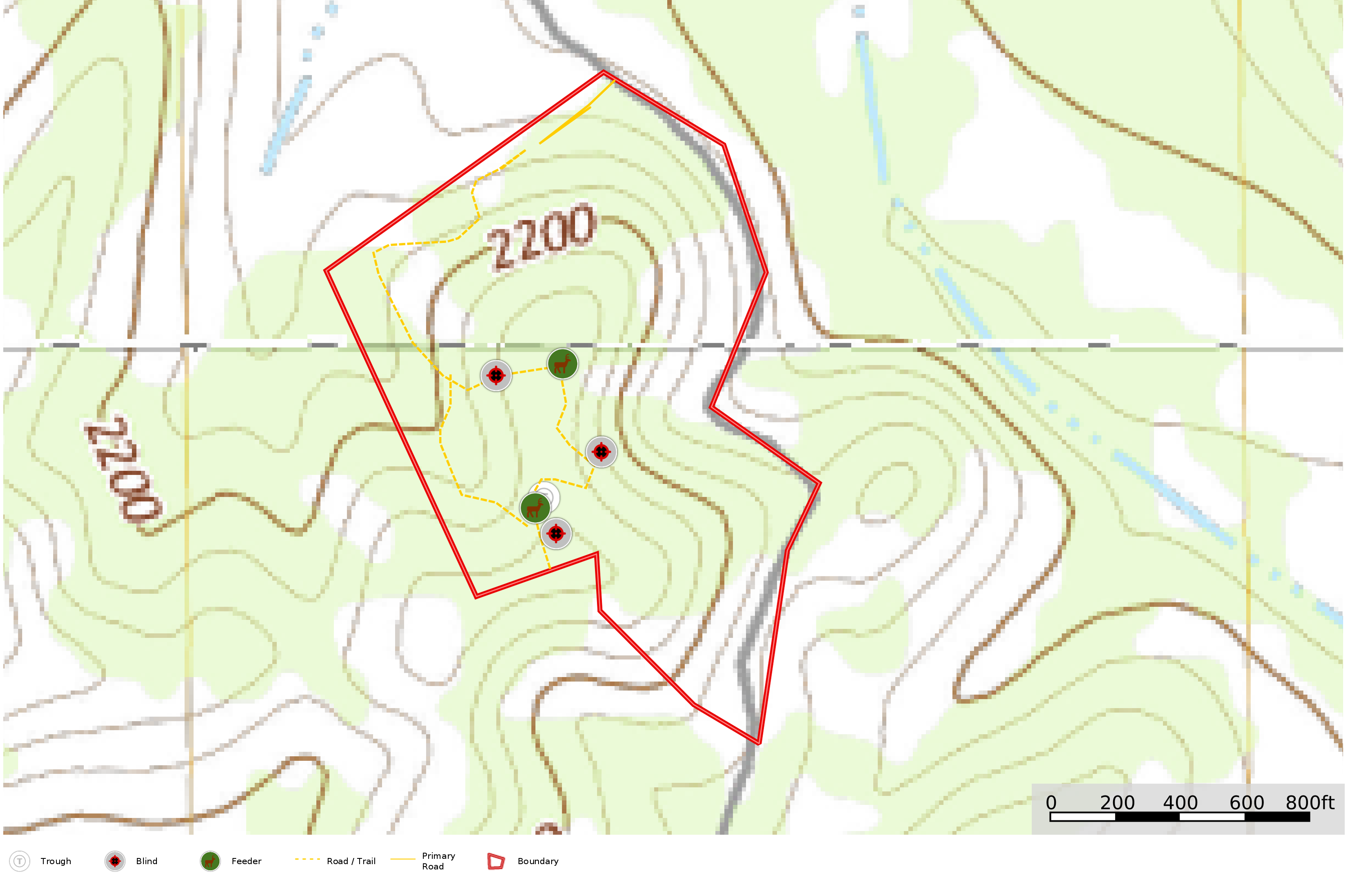 Great trail system running all throughout the property leading to several good hunting spots with 3 stands and 2 feeders