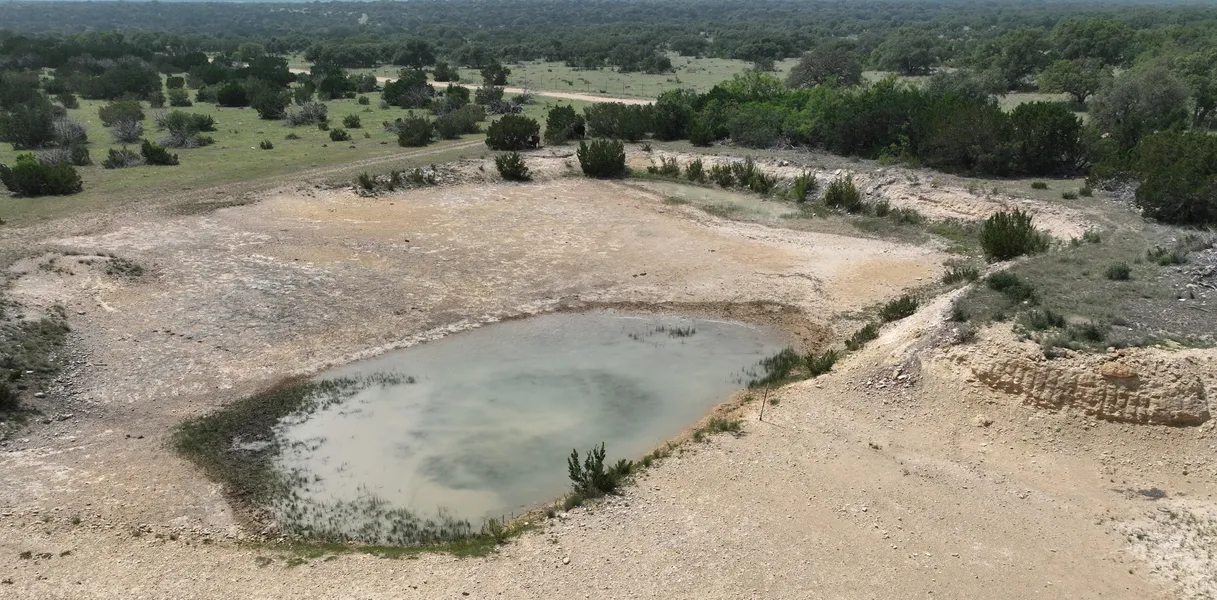 Large caliche pond holding water most of the year attracting dove and watering the wildlife
